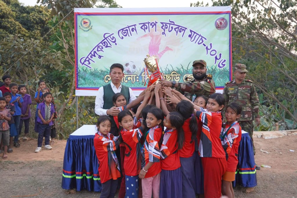 খাগড়াছড়ির গুইমারা উপজেলার সিন্দুকছড়ি জোনের তত্ত্বাবধানে স্থানীয় মেয়ে শিক্ষার্থীদের অংশগ্রহণে একটি উৎসব মুখর প্রীতি ফুটবল ম্যাচ অনুষ্ঠিত হয়েছে।